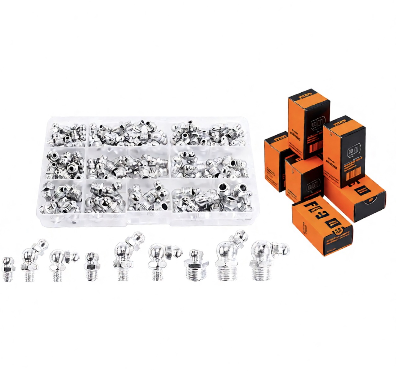 Automotive Iron Grease Fittings Kit – Standard & Metric Zerk Nipples for Car, Truck & Van Maintenance