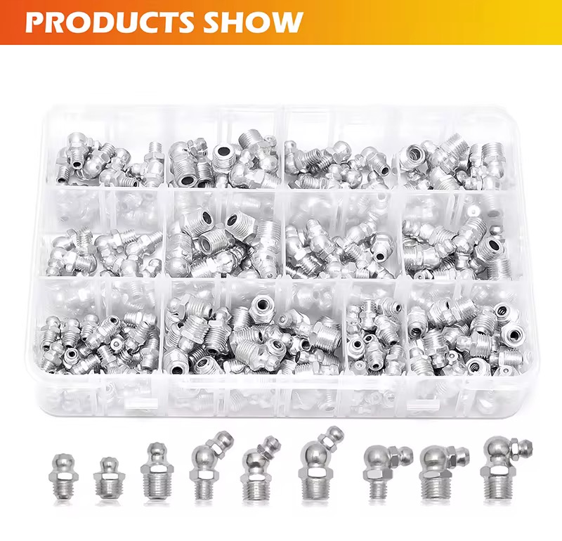 Our full range grease nozzles ,grease nipple and grease fittings kits include brass, steel, and stainless steel options, designed for high pressure leak-proof performance. These corrosion resistant grease nipples are ideal for South America mining excavators, Middle East agricultural tractors, construction machinery, and fleet maintenance. With 45°/90° angled and straight fittings, they offer universal compatibility with all standard grease guns, ensuring precise lubrication even in narrow or hard-to-reach areas. We provide both bulk packaging for industrial distributors and pre-assorted kits for maintenance teams, with special pricing for regional customers.