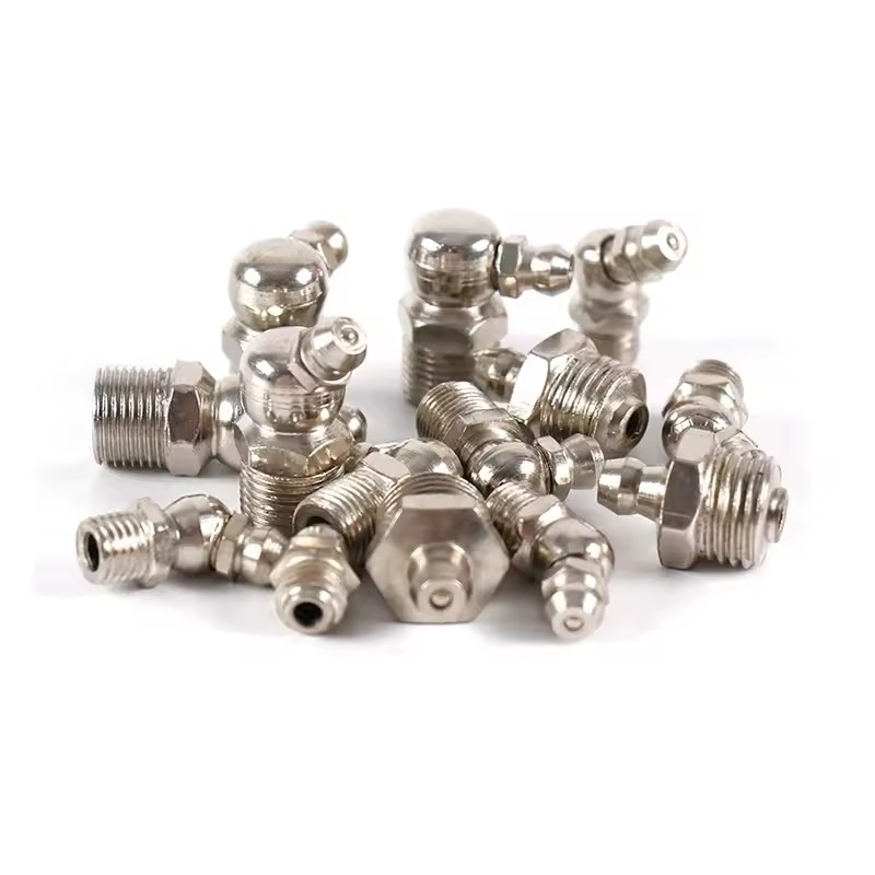 Brass grease nozzle, steel grease nipple, stainless steel grease fitting kits, high pressure leak-proof corrosion resistant, 45°/90° angled & straight grease nipples, acoplador de grasa industrial, boquilla de grasa para precisión, فوهات زيت حشو عالية الدقة, مقابس زيت حشو عالية الضغط, universal fit for all standard grease guns, ideal for South America mining excavators, Middle East agricultural tractors, construction machinery, fleet maintenance and narrow fitting lubrication, available in bulk packaging (100pcs/500pcs) and pre-assorted kits, special pricing for regional customers, bulk order discounts and custom solutions provided.